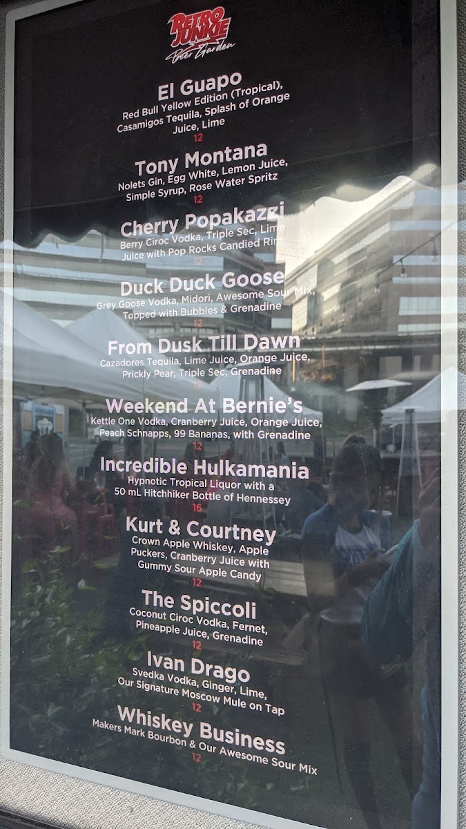 Alongside the food, Retro Junkie serves refreshing drinks, including classic Jarritos and signature cocktails like the Kurt & Courtney, which dazzles with its playful combination of flavors.
